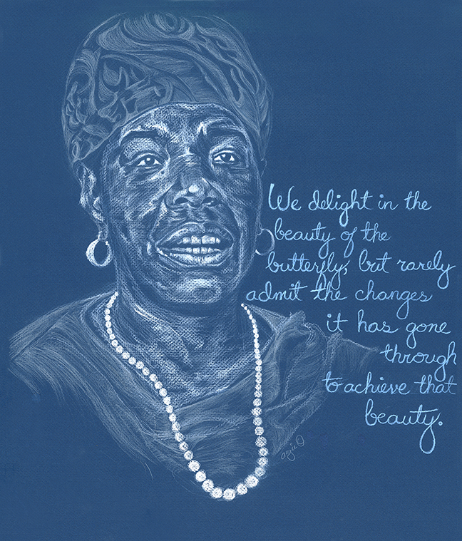 Portrait of a young Maya Angelou featuring one of my favorite quotes by her.